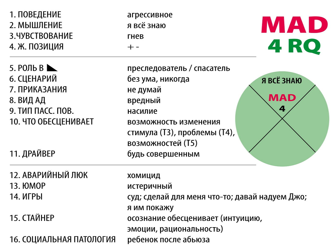 Он использует 15 популярных концепций Транзактного Анализа, которые более четко обрисовывают цель, наводят фокус.