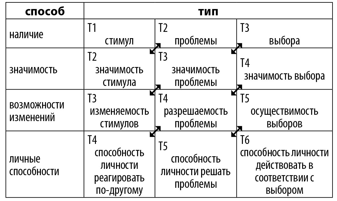 • уровень возможности изменения (изменение стимула, решение проблемы, возможности выбора);