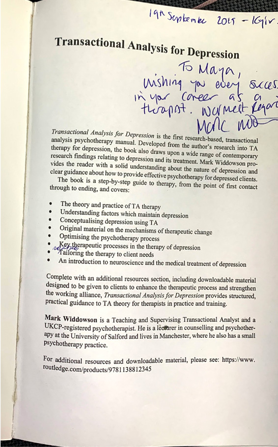 2 Widdowson, M. (2015) Transactional Analysis for Depression: A Step-by-step Treatment Manual. England, UK: Routledge.