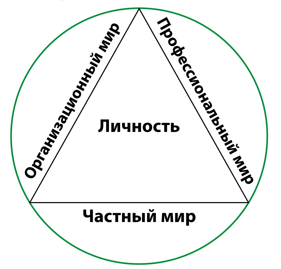 Развитие личности связано с развитием долгосрочного, сбалансированного отношения к этим трем мирам, изучение и занятие ролей в них, а также поиск смысла в этих ролях и отношений, соответствующих этим ролям. (p. 31)