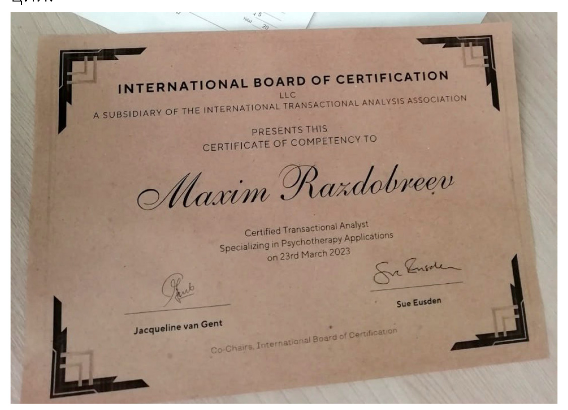 • CTA (P) сертифицированный транзактный аналитик в области психотерапии