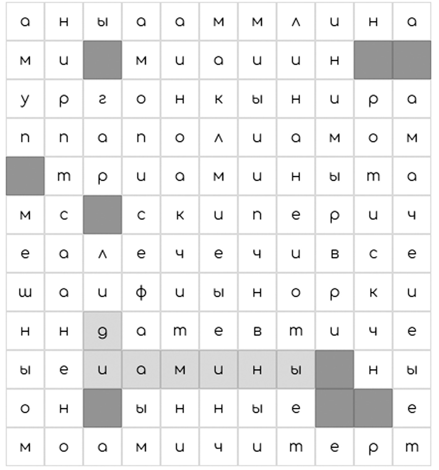 Рис. 2. Филворд «Аминосодержащие соединения»